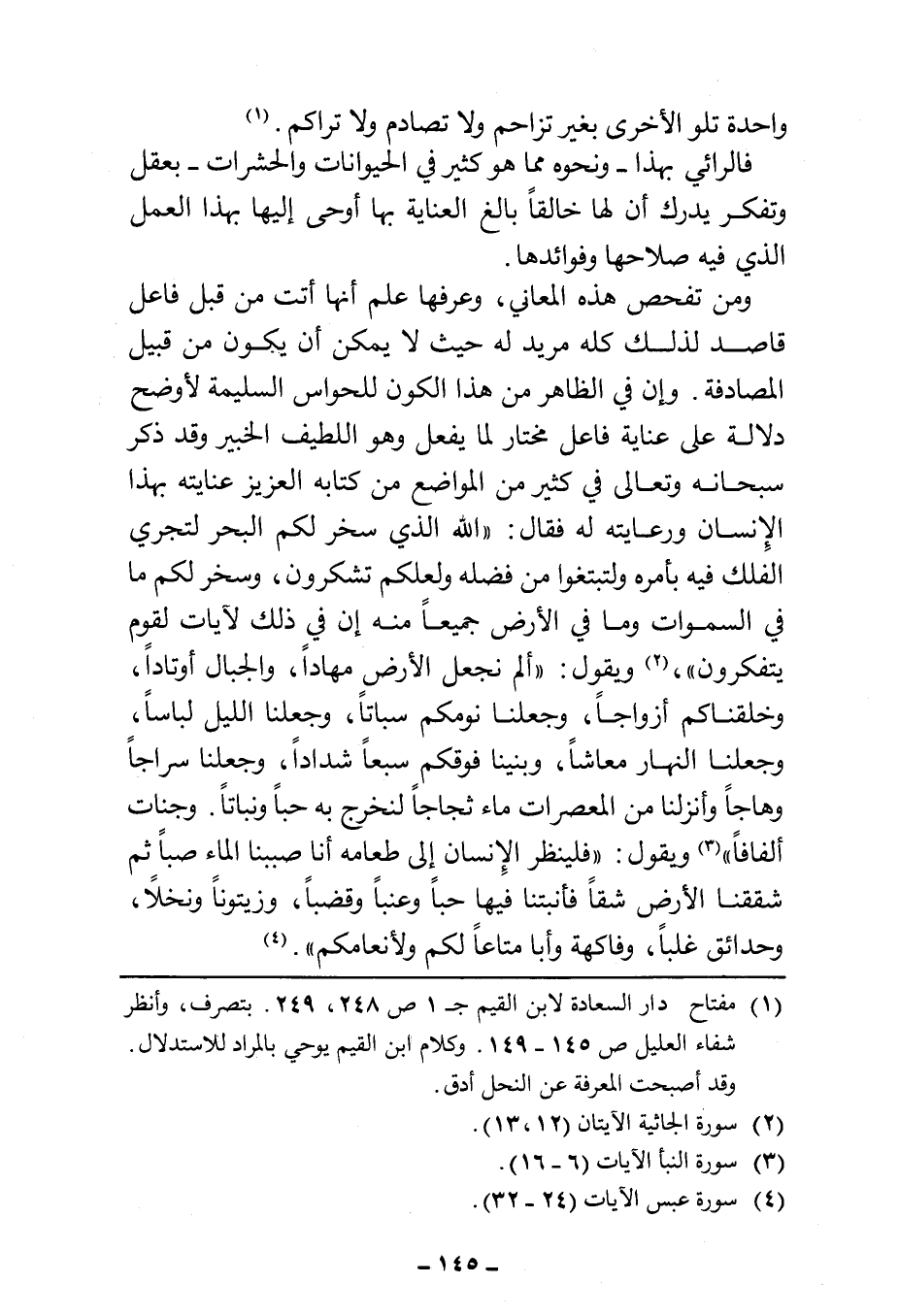 (¬١) مفتاح دار السعادة لابن القيم ج ١ ص ٢٤٨، ٢٤٩. بتصرف، وانظر شفاء العليل ص ١٤٥ - ١٤٩. وكلام ابن القيم يوحي بالمراد للاستدلال.