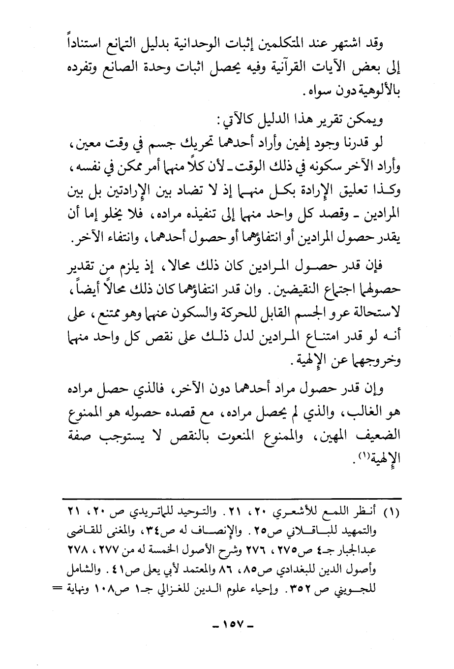 وإن قدر حصول مراد أحدهما دون الآخر، فالذي حصل مراده هو الغالب، والذي لم يحصل مراده، مع قصده حصوله هو الممنوع الضعيف المهين، والممنوع المنعوت بالنقص لا يستوجب صفة الإِلهية (¬١).