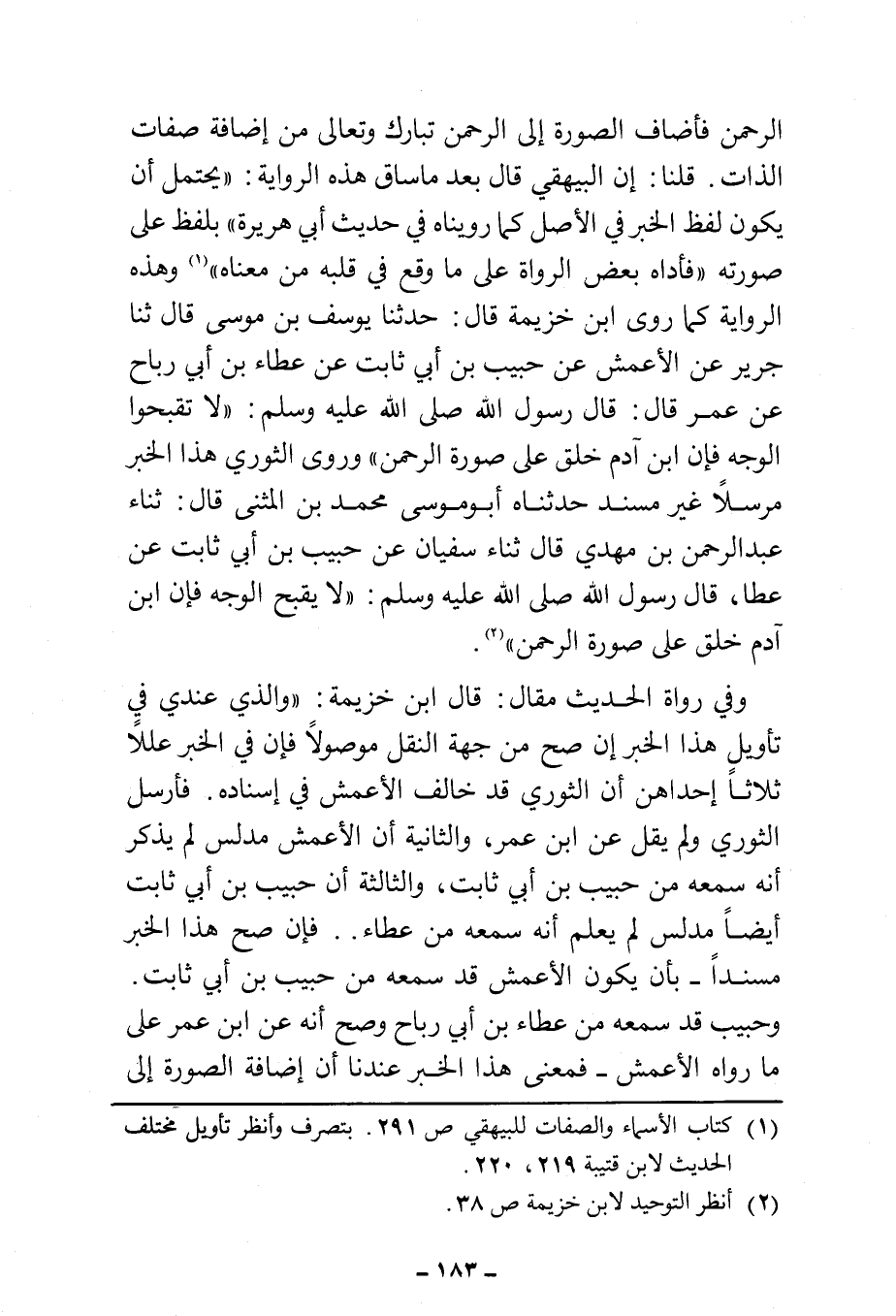 (¬٢) انظر التوحيد لابن خزيمة ص ٣٨.