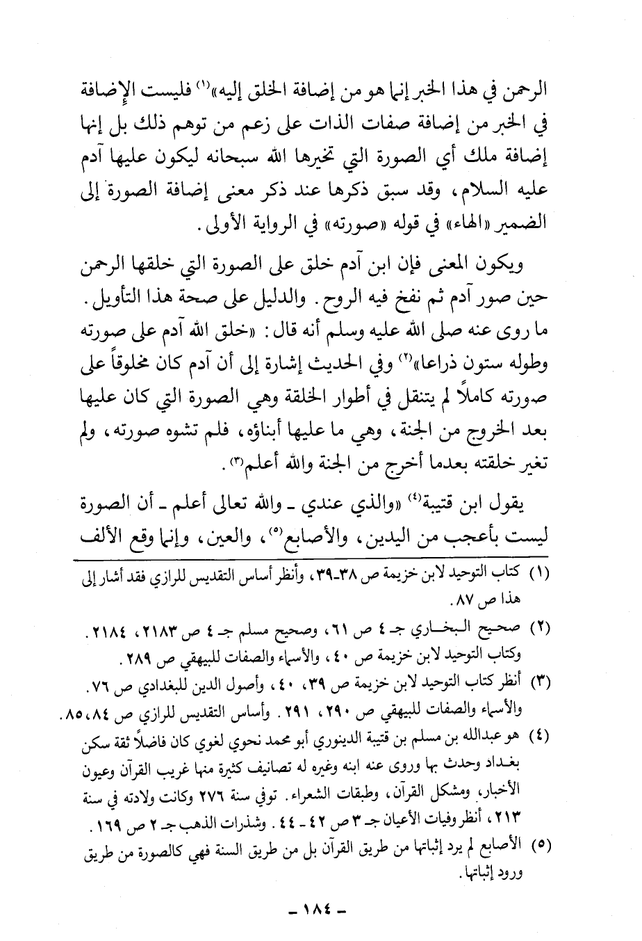 (¬٣) انظر كتاب التوحيد لابن خزيمة ص ٣٩، ٤٠، وأصول الدين للبغدادي ص ٧٦. والأسماء والصفات للبيهقي ص ٢٩٠، ٢٩١. وأساس التقديس للرازي ص ٨٤، ٨٥.