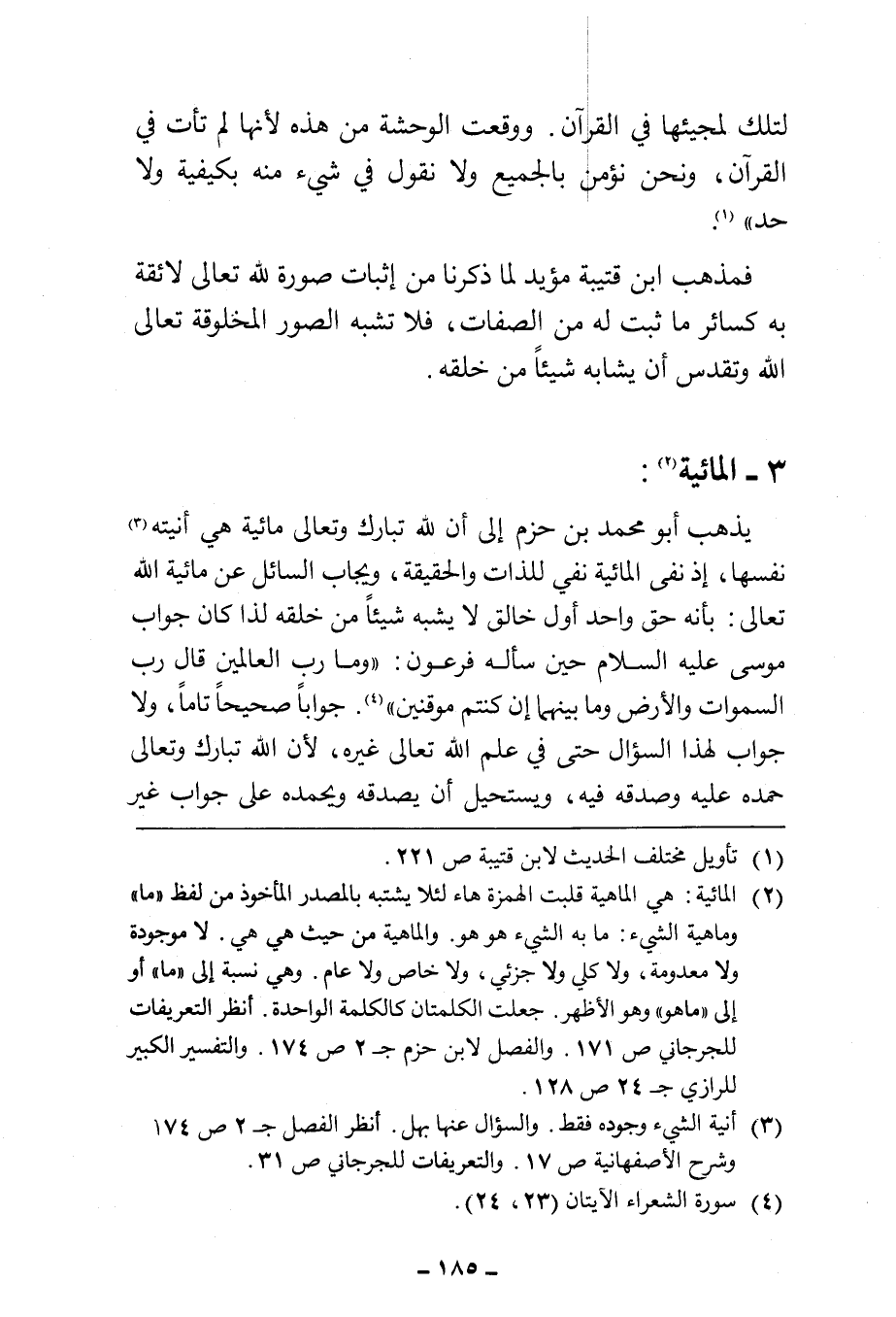 (¬٣) أنية الشيء وجوده فقط. والسؤال عنها بهل. انظر الفصل جـ ٢ ص ١٧٤ وشرح الأصفهانية ص ١٧. والتعريفات للجرجاني ص ٣١.