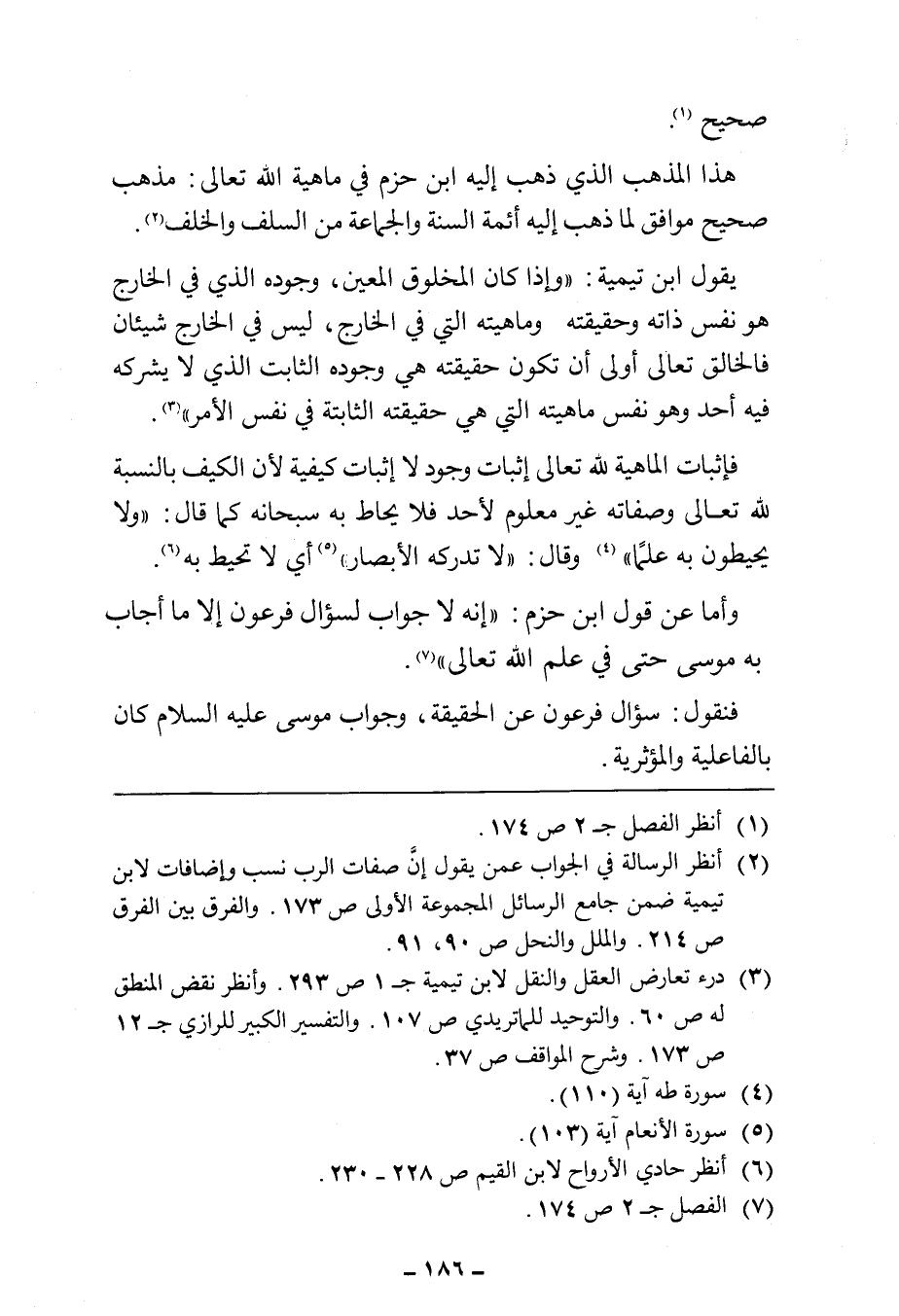 هذا المذهب الذي ذهب إليه ابن حزم في ماهية الله تعالى: مذهب صحيح موافق لما ذهب إليه أئمة السنة والجماعة من السلف والخلف (¬٢).
