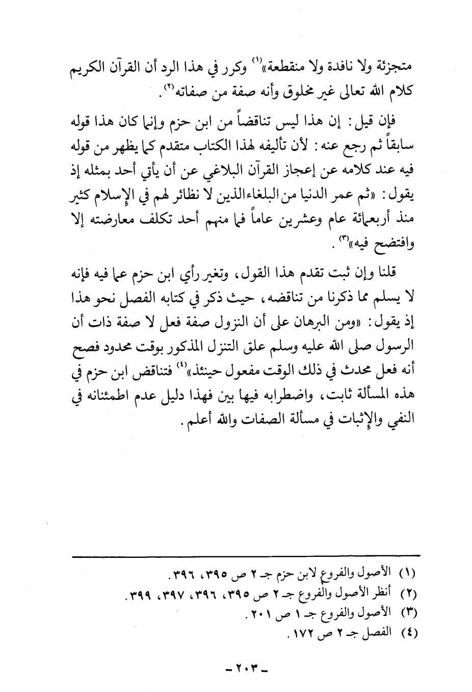 (¬١) الأصول والفروع لابن حزم جـ ٢ ص ٣٩٥، ٣٩٦.