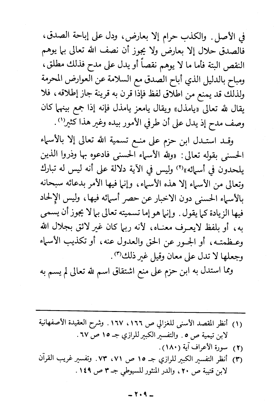 (¬١) انظر المقصد الأسنى للغزالي ص ١٦٦، ١٦٧. وشرح العقيدة الأصفهانية لابن تيمية ص ٥. والتفسير الكبير للرازي جـ ١٥ ص ٦٧.