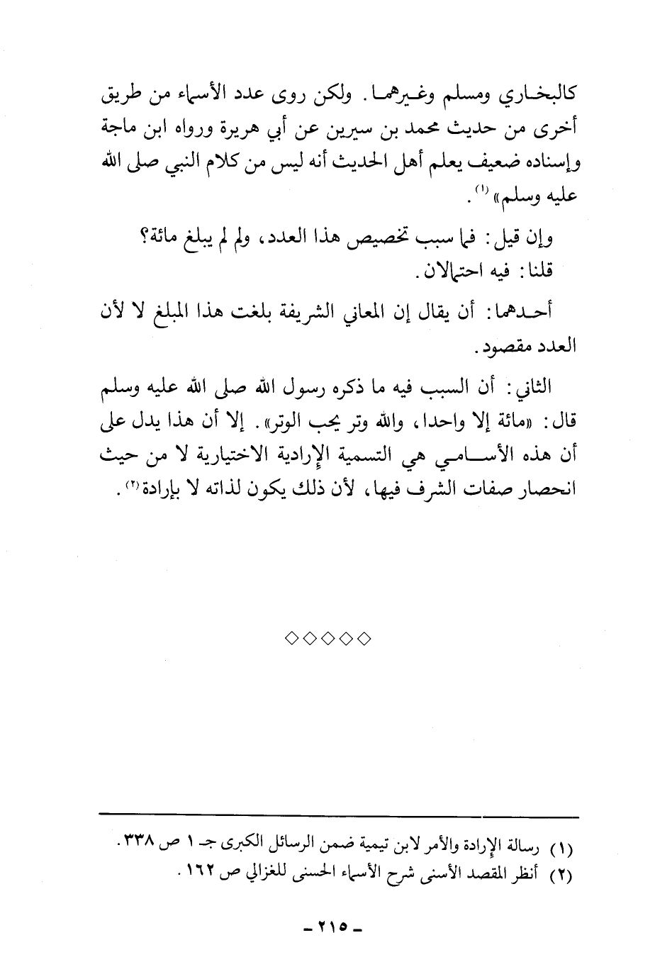 (¬٢) انظر المقصد الأسنى شرح الأسماء الحسنى للغزالي ص ١٦٢.