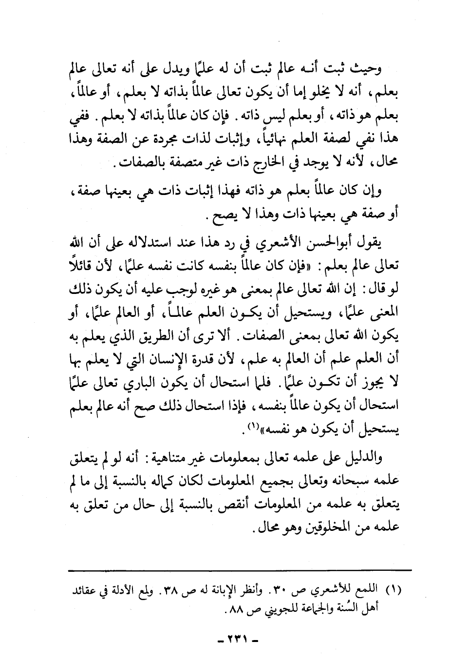 (¬١) اللمع للأشعري ص ٣٠. وانظر الإِبانة له ص ٣٨. ولمع الأدلة في عقائد أهل السُّنة والجماعة للجويني ص ٨٨.