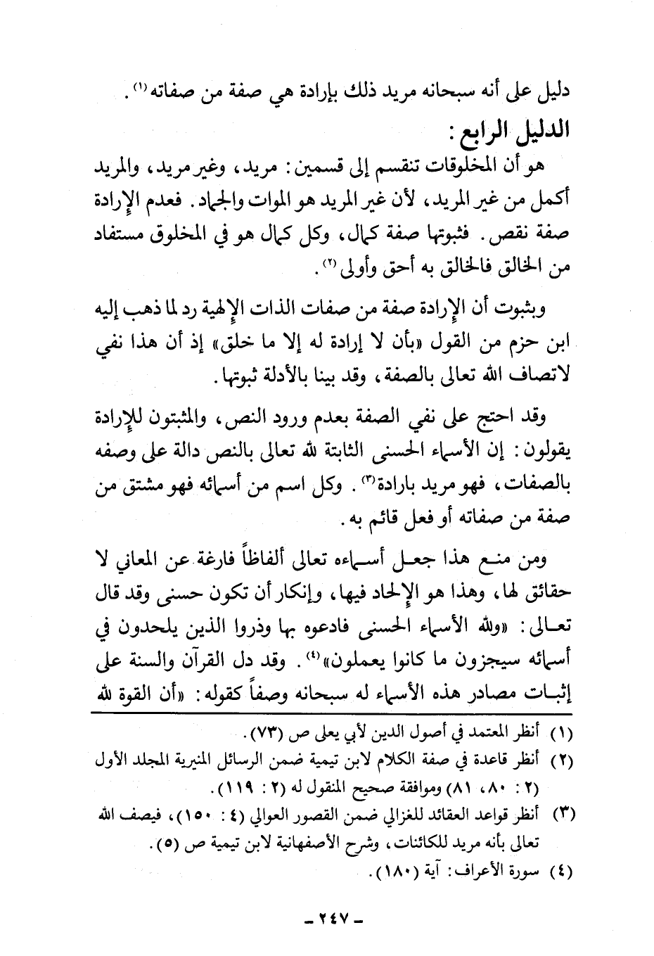 (¬٣) انظر قواعد العقائد للغزالي ضمن القصور العوالي (٤: ١٥٠)، فيصف الله تعالى بأنه مريد للكائنات، وشرح الأصفهانية لابن تيمية ص (٥).