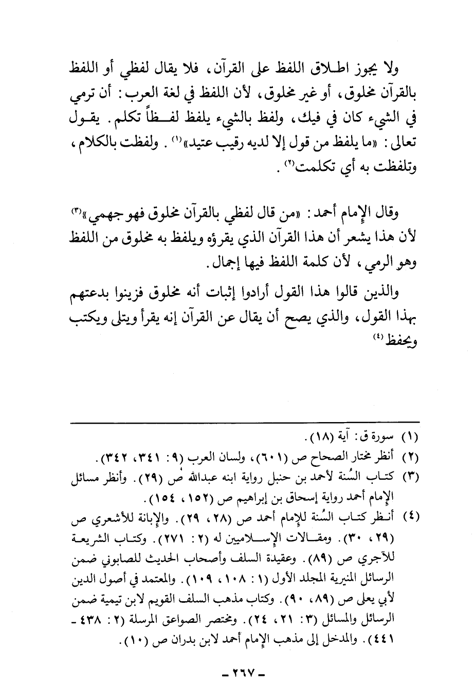 وقال الإمام أحمد: "من قال لفظي بالقران مخلوق فهو جهمي" (¬٣) لأن هذا يشعر أن هذا القرآن الذي يقرؤه ويلفظ به مخلوق من اللفظ وهو الرمي، لأن كلمة اللفظ فيها إجمال.