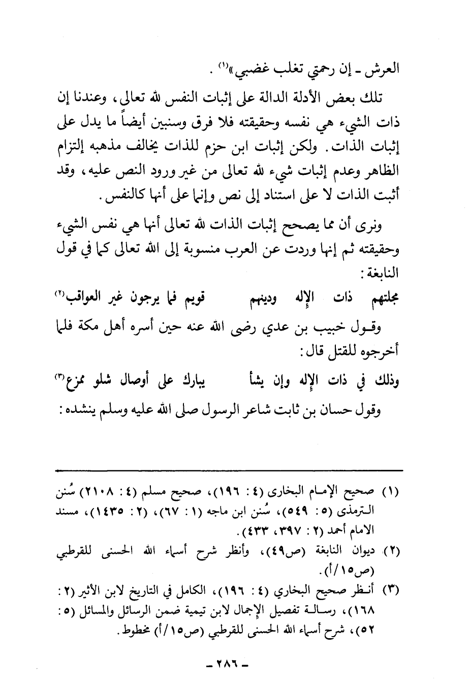 (¬٣) انظر صحيح البخاري (٤: ١٩٦)، الكامل في التاريخ لابن الأثير (٢: ١٦٨)، رسالة تفصيل الإجمال لابن تيمية ضمن الرسائل والمسائل (٥: ٥٢)، شرح أسماء الله الحسنى للقرطبي (ص ١٥/أ) مخطوط.