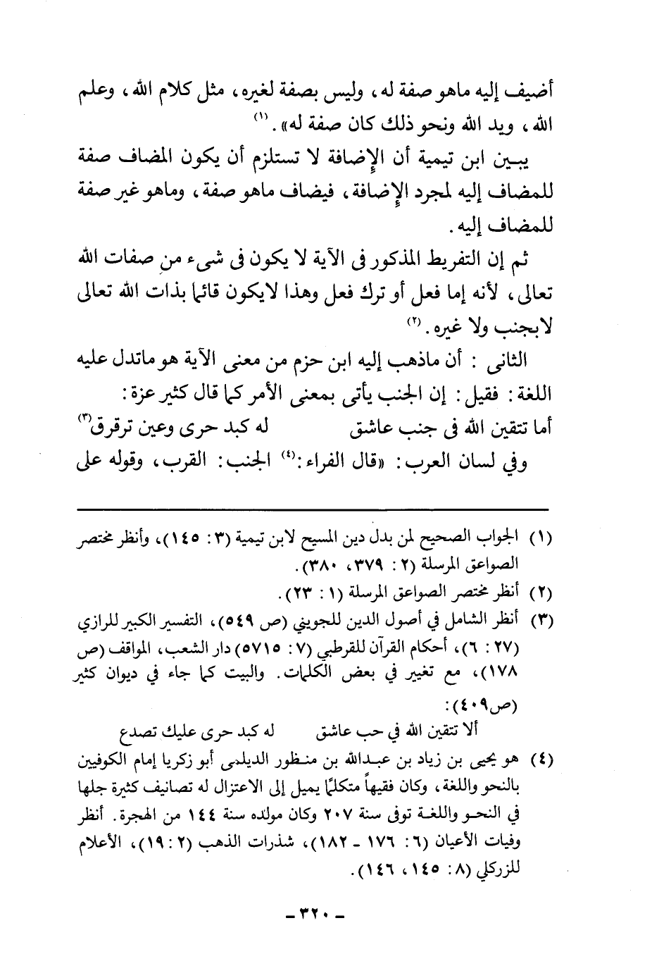 (¬٣) انظر الشامل في أصول الدين للجويني (ص ٥٤٩)، التفسير الكبير للرازي (٢٧: ٦)، أحكام القرآن للقرطبي (٧: ٥٧١٥) دار الشعب، المواقف (ص ١٧٨)، مع تغيير في بعض الكلمات. والبيت كما جاء في ديوان كثير (ص ٤٠٩):