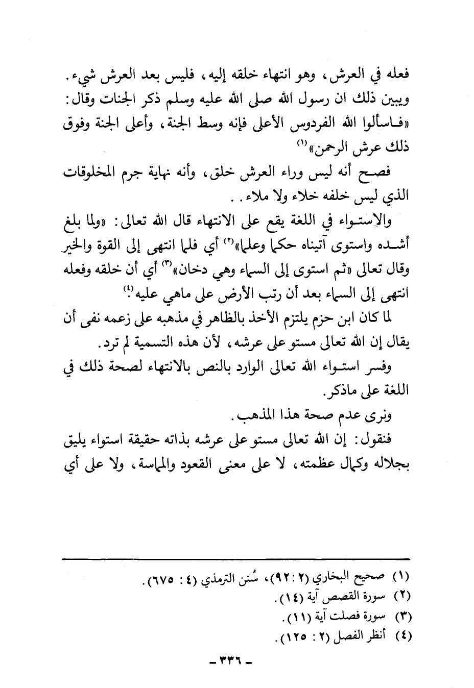 فصح أنه ليس وراء العرش خلق، وأنه نهاية جرم المخلوقات الذي ليس خلفه خلاء ولا ملاء.
