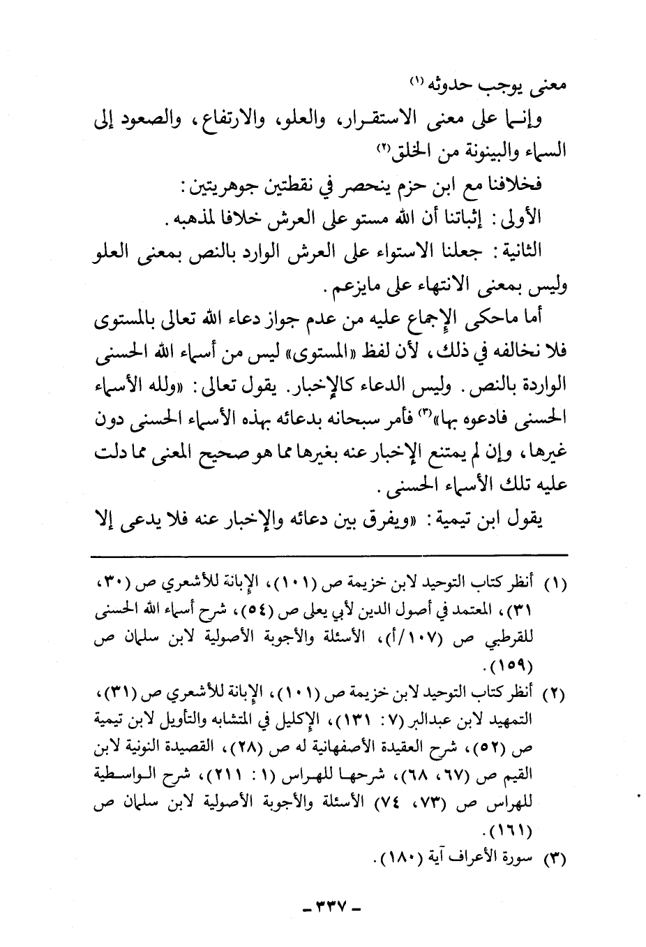 (¬١) انظر كتاب التوحيد لابن خزيمة ص (١٠١)، الإبانة للأشعري ص (٣٠، ٣١)، المعتمد في أصول الدين لأبي يعلى ص (٥٤)، شرح أسماء الله الحسنى للقرطبي ص (١٠٧/ أ)، الأسئلة والأجوبة الأصولية لابن سلمان ص (١٥٩).