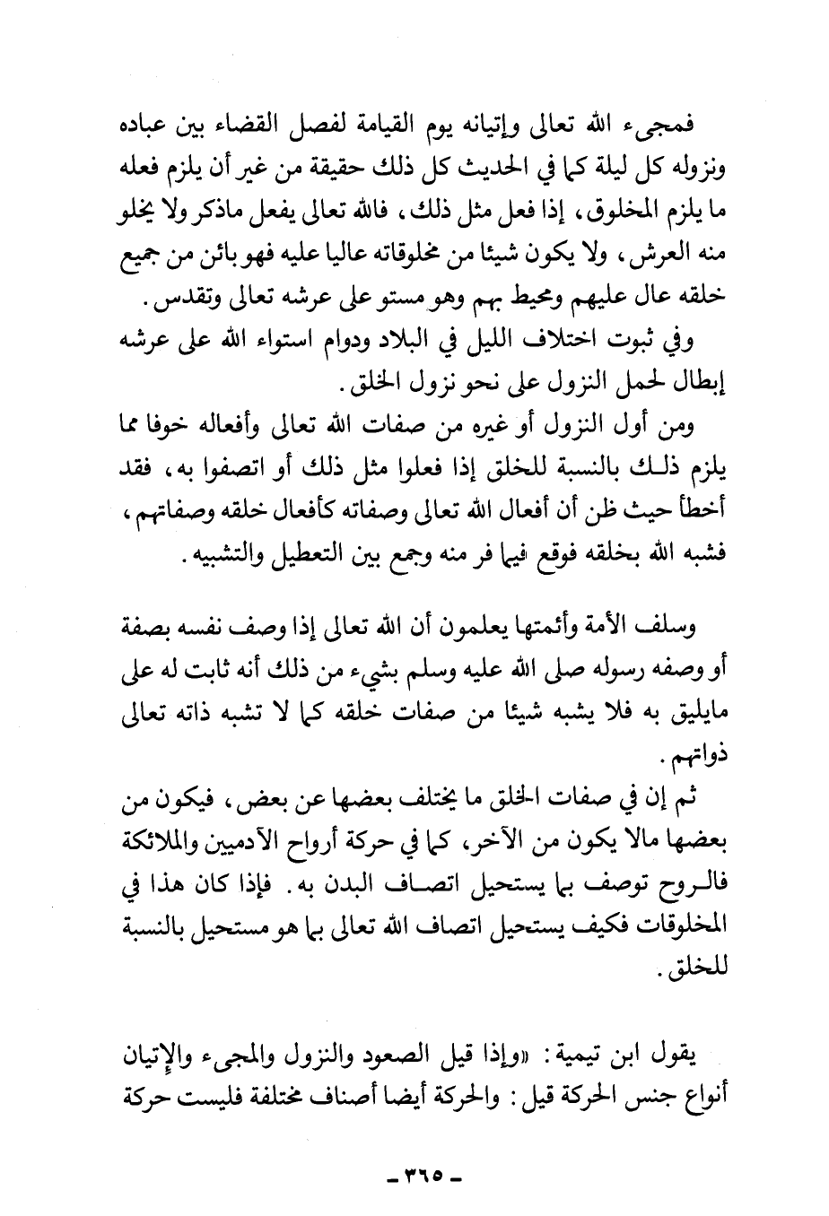 وسلف الأمة وأئمتها يعلمون أن الله تعالى إذا وصف نفسه بصفة أو وصفه رسوله صلى الله عليه وسلم بشيء من ذلك أنه ثابت له على ما يليق به فلا يشبه شيئا من صفات خلقه كما لا تشبه ذاته تعالى ذواتهم.