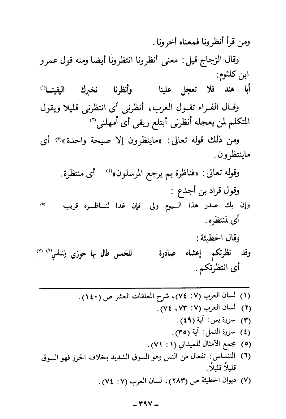 (¬٧) ديوان الحطيئة ص (٢٨٣)، لسان العرب (٧: ٧٤).