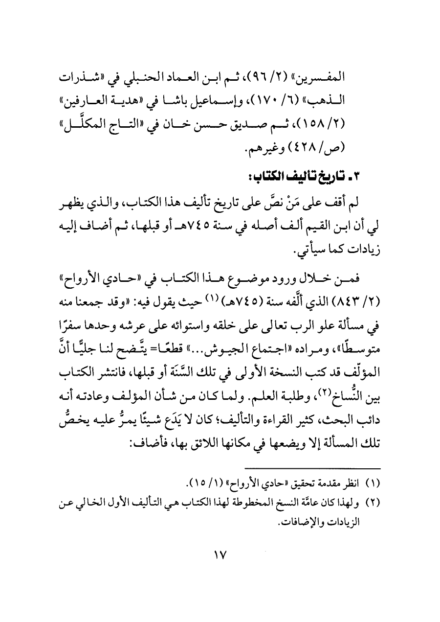 (¬١) انظر مقدمة تحقيق «حادي الأرواح» (١/ ١٥).