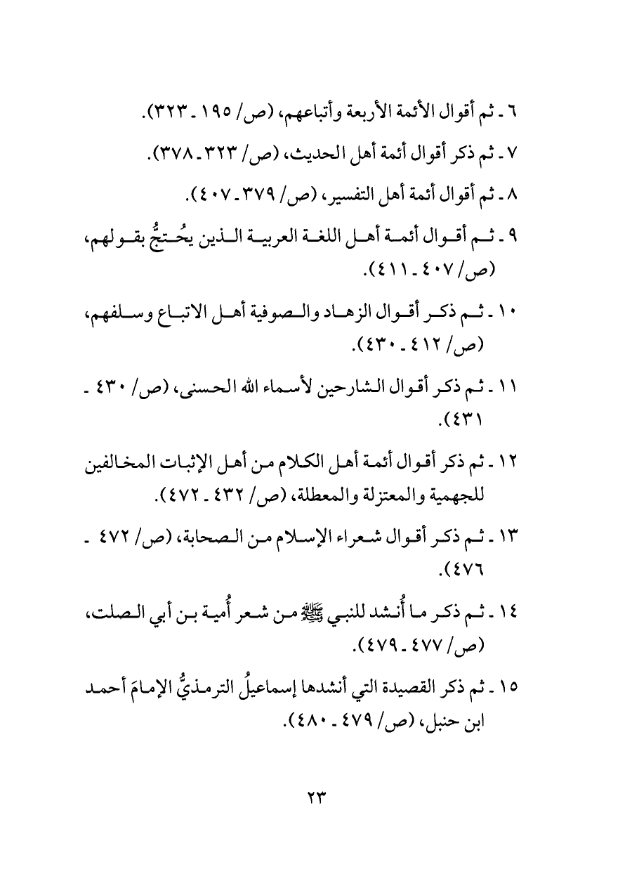 ١٥ - ثم ذكر القصيدة التي أنشدها إسماعيلُ الترمذيُّ الإمامَ أحمد ابن حنبل، (ص/٤٧٩ ـ ٤٨٠).