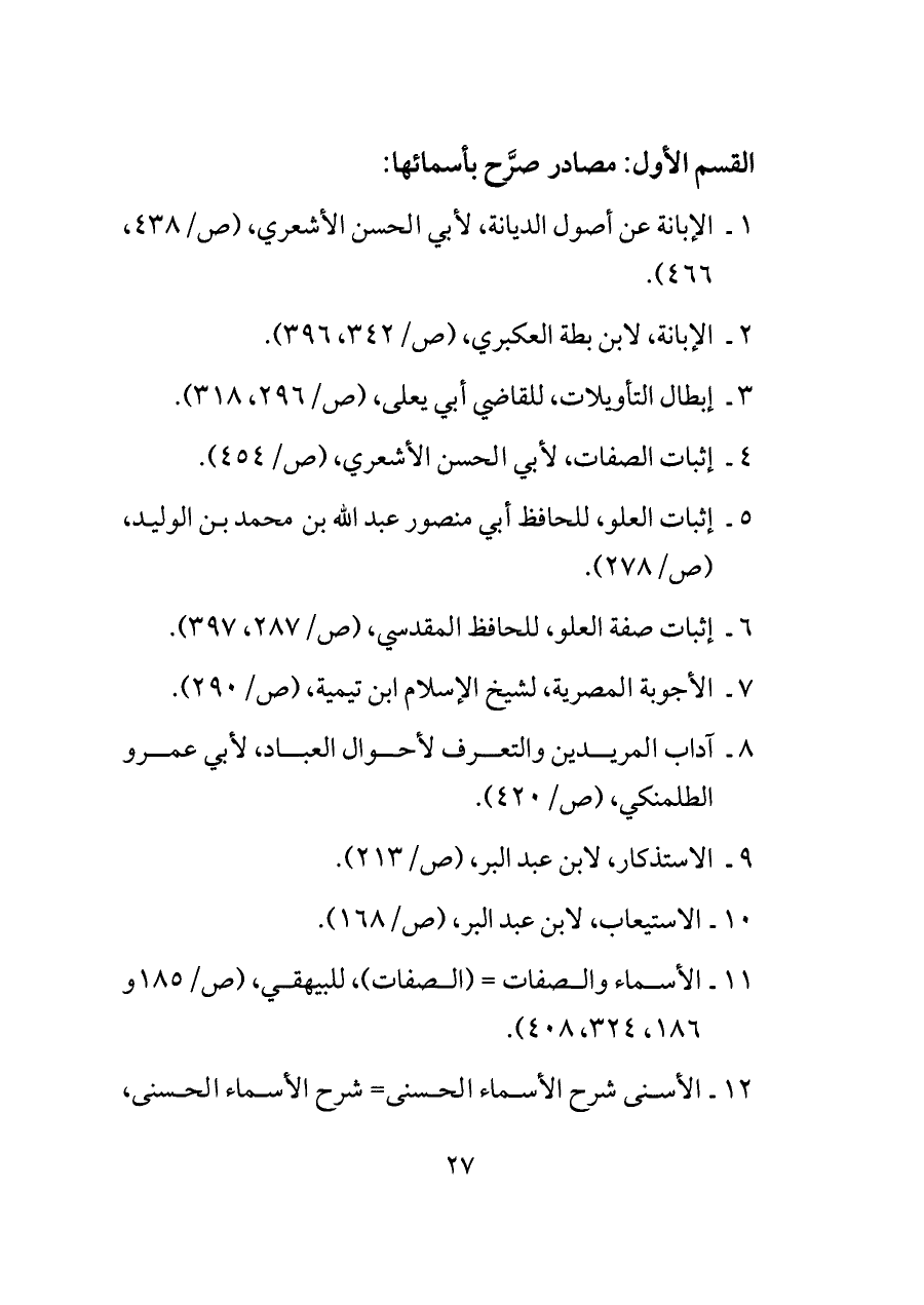 ١ - الإبانة عن أصول الديانة، لأبي الحسن الأشعري، (ص/٤٣٨، ٤٦٦).