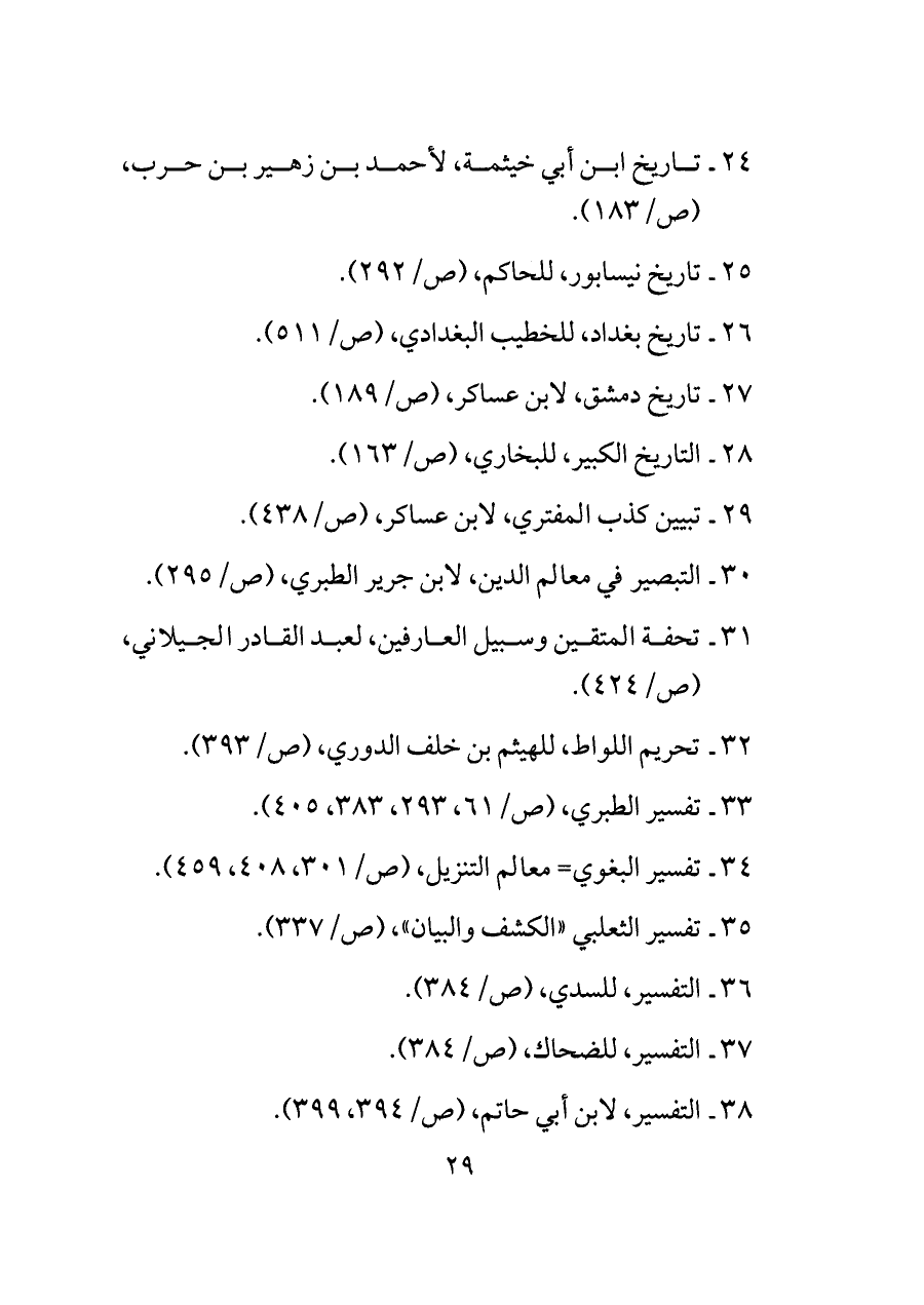 ٢٤ - تاريخ ابن أبي خيثمة، لأحمد بن زهير بن حرب، (ص/١٨٣).