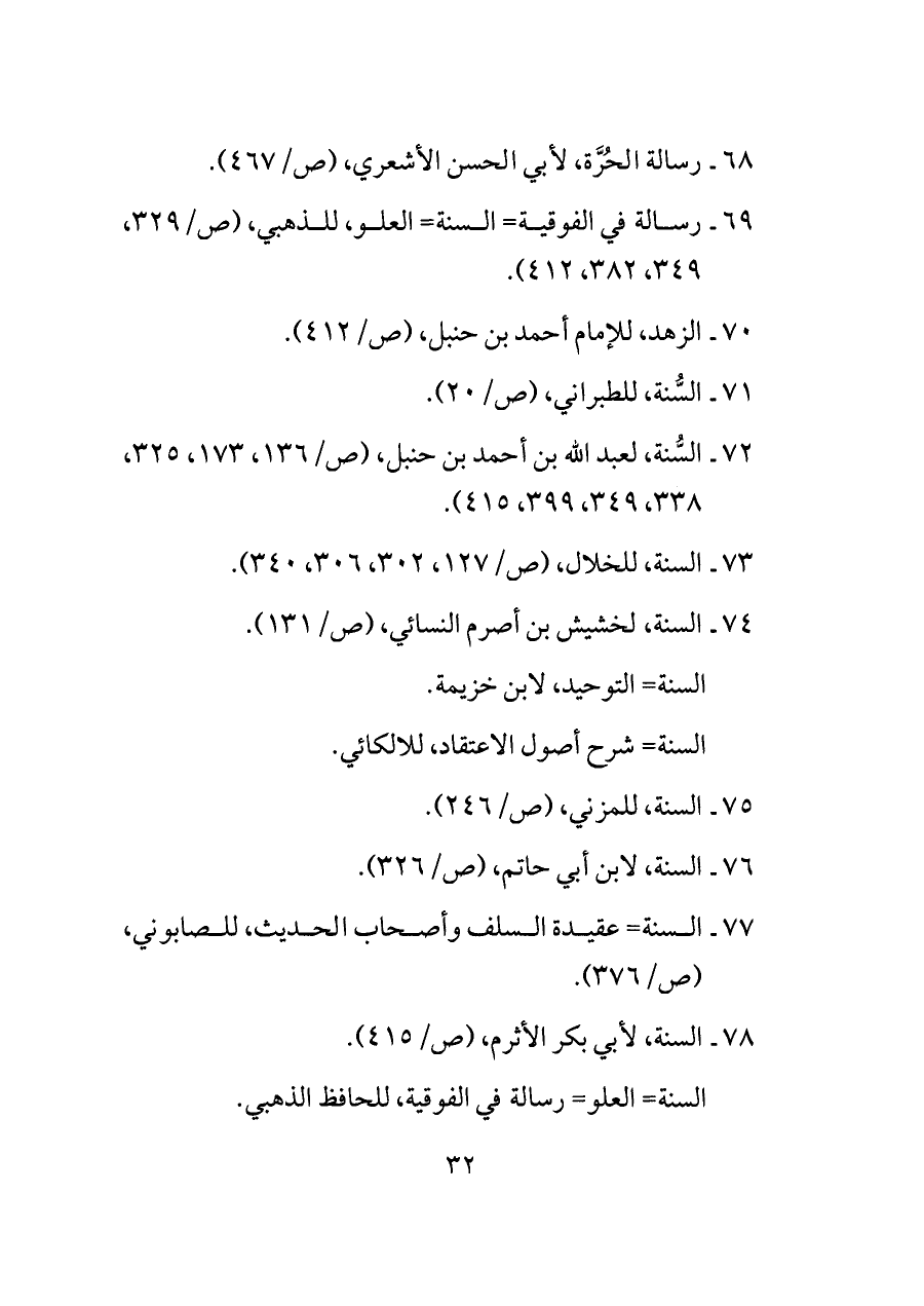 ٧٧ - السنة= عقيدة السلف وأصحاب الحديث، للصابوني، (ص/٣٧٦).
