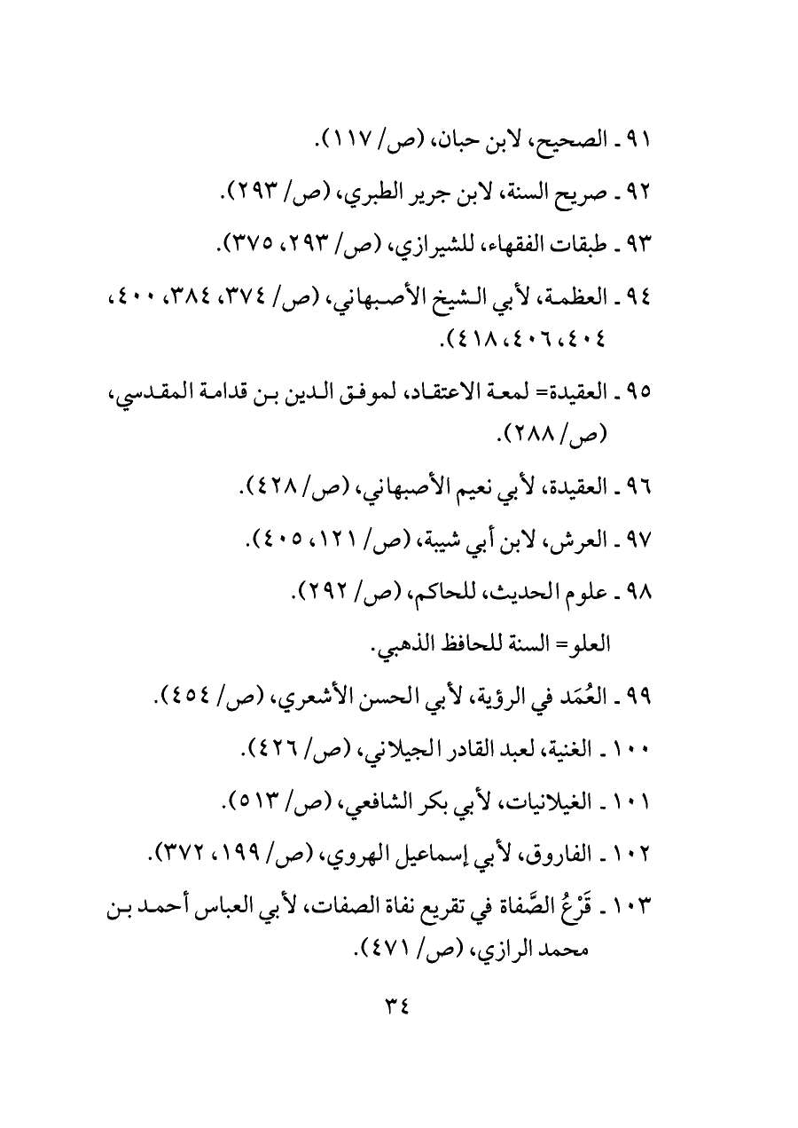١٠٣ - قَرْعُ الصَّفاة في تقريع نفاة الصفات، لأبي العباس أحمد بن محمد الرازي، (ص/٤٧١).