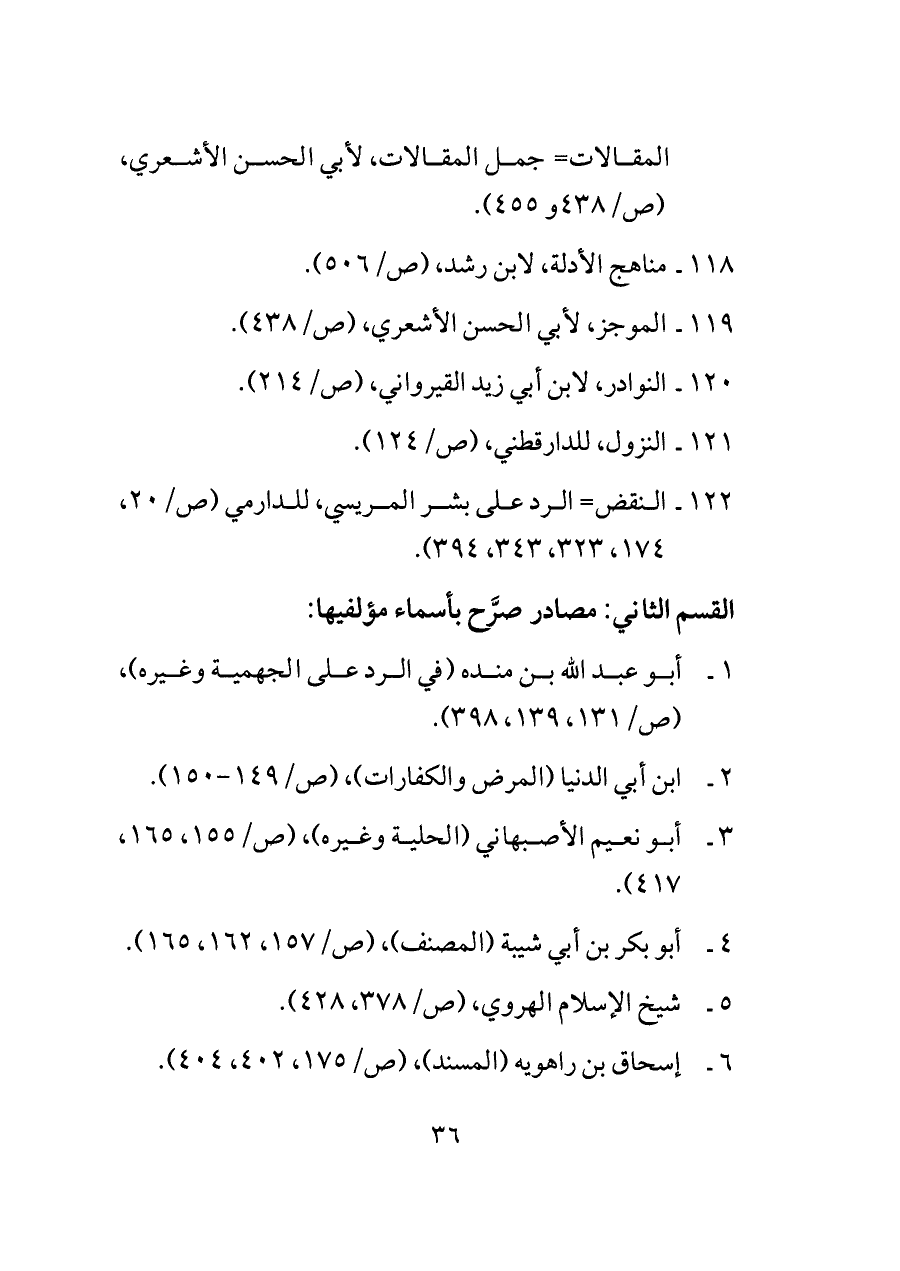 القسم الثاني: مصادر صرَّح بأسماء مؤلفيها: