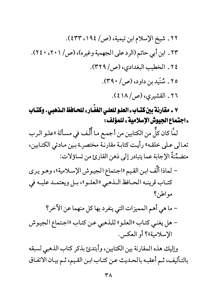 - لماذا ألَّف ابن القيم «اجتماع الجيوش الإسلامية»، وهو يرى كتاب قرينه الحافظ الذهبي «العلو»، بل ويعتمد عليه في مواطن؟