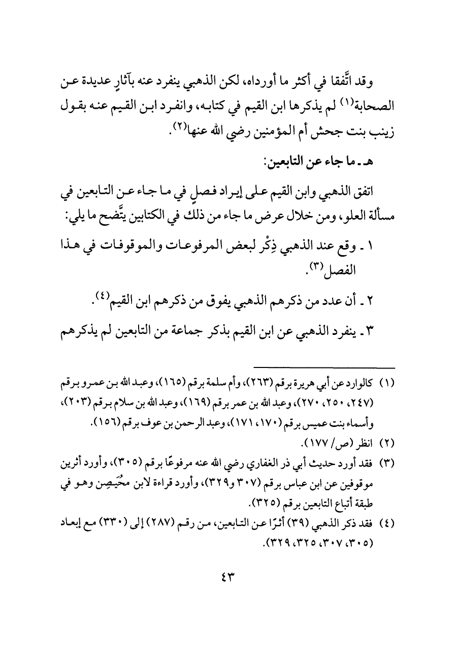 (¬٤) فقد ذكر الذهبي (٣٩) أثرًا عن التابعين، من رقم (٢٨٧) إلى (٣٣٠) مع إبعاد (٣٠٥، ٣٠٧، ٣٢٥، ٣٢٩).