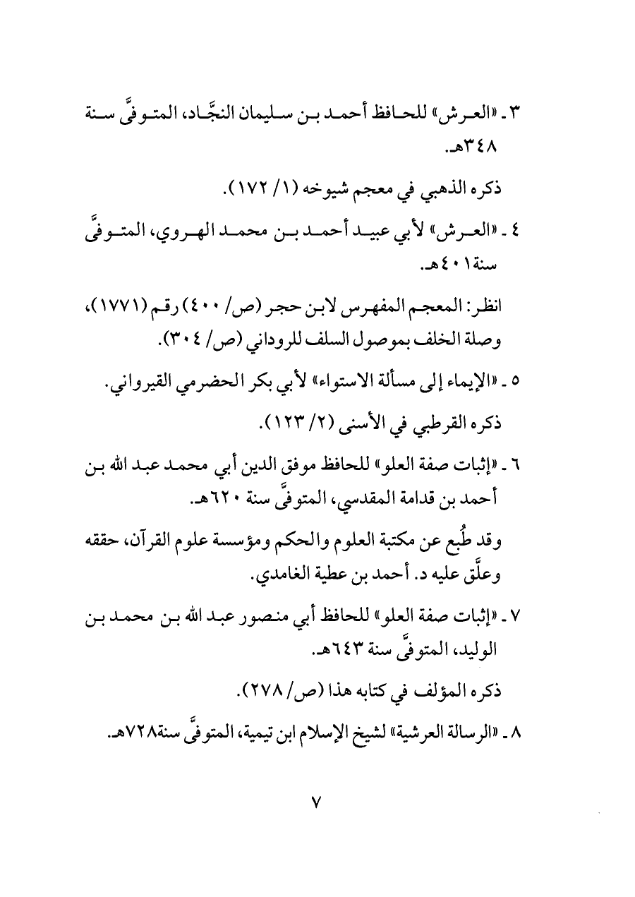 ٣ - «العرش» للحافظ أحمد بن سليمان النجَّاد، المتوفَّى سنة ٣٤٨ هـ.