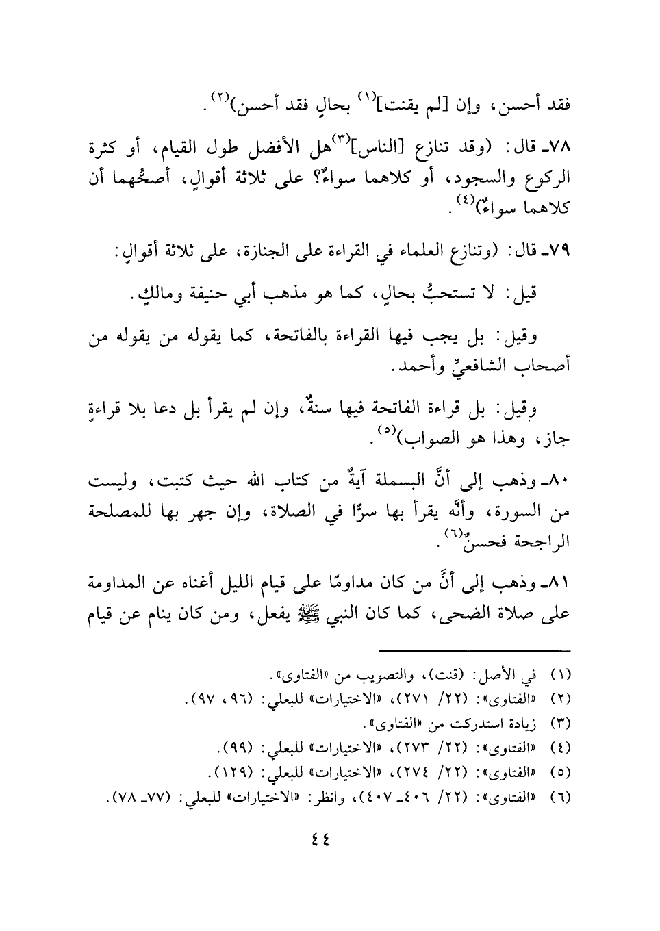 (¬٤) "الفتاوى": (٢٢/ ٢٧٣)، "الاختيارات" للبعلي: (٩٩).
