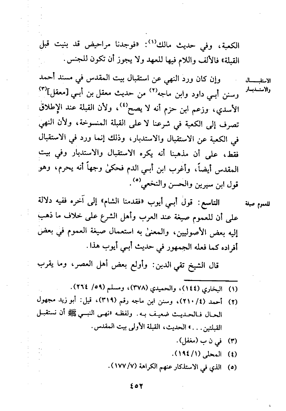 (¬2) أحمد (4/ 210)، وسنن ابن ماجه رقم (319)، قيل: أبو زيد مجهول الحال فالحديث ضعيف به. ولفظه "نهى النبي - صلى الله عليه وسلم - أن نستقبل القبلتين ... " الحديث، القبلة الأولى بيت المقدس.