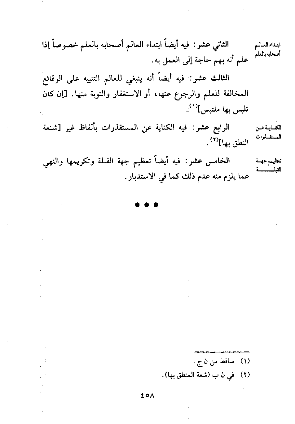الثالث عشر: فيه أيضًا أنه ينبغي للعالم التنبيه على الوقائع المخالفة للعلم والرجوع عنها، أو الاستغفار والتوبة منها. [إن كان