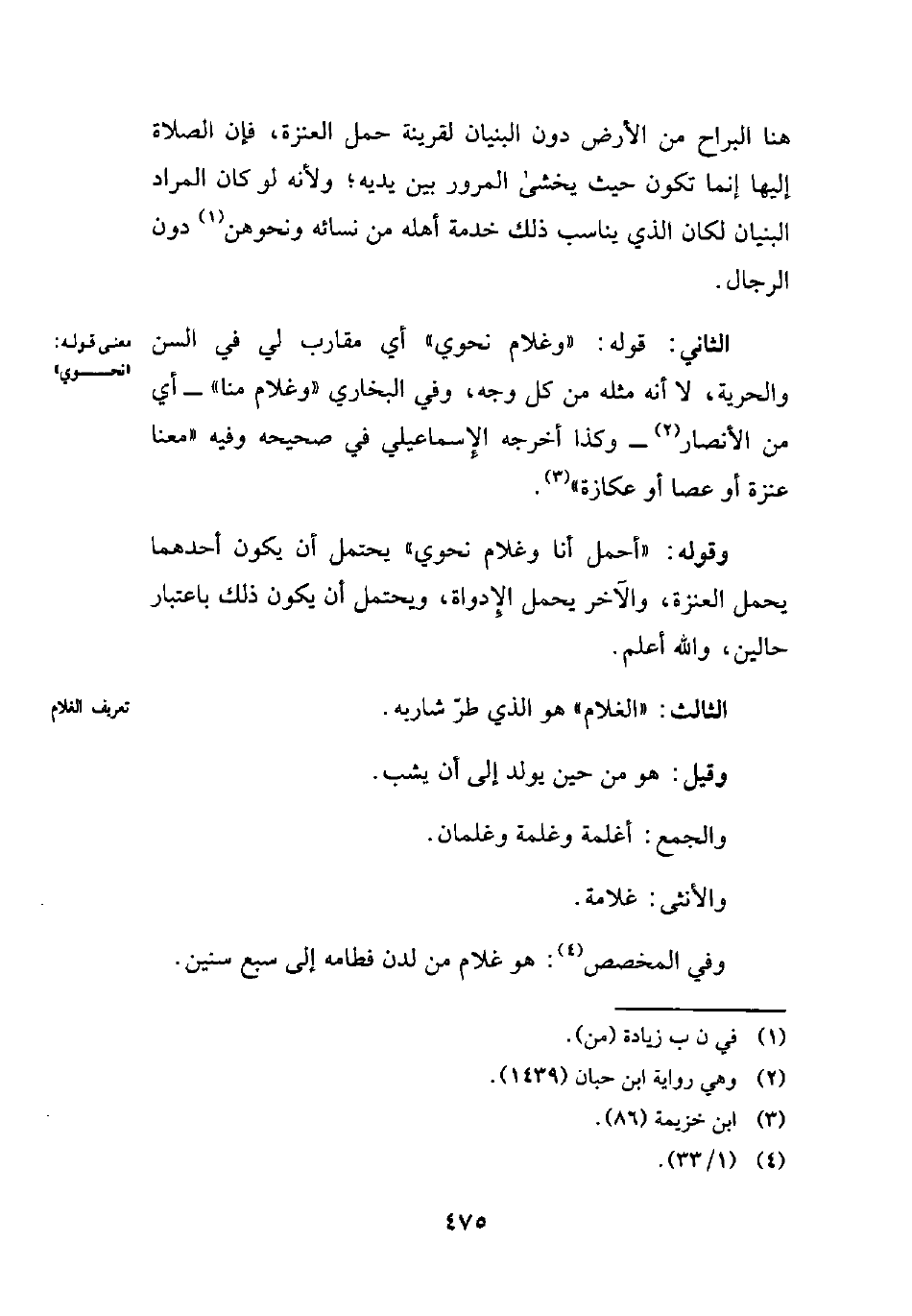 الثاني: قوله: "وغلام نحوي" أي مقارب ليس في السن والحرية، لا أنه مثله من كل وجه، وفي البخاري "وغلام منا" -أي من الأنصار (¬2) - وكذا أخرجه الإسماعيلي في صحيحه وفيه "معنا عنزة أو عصا أو عكازة" (¬3).