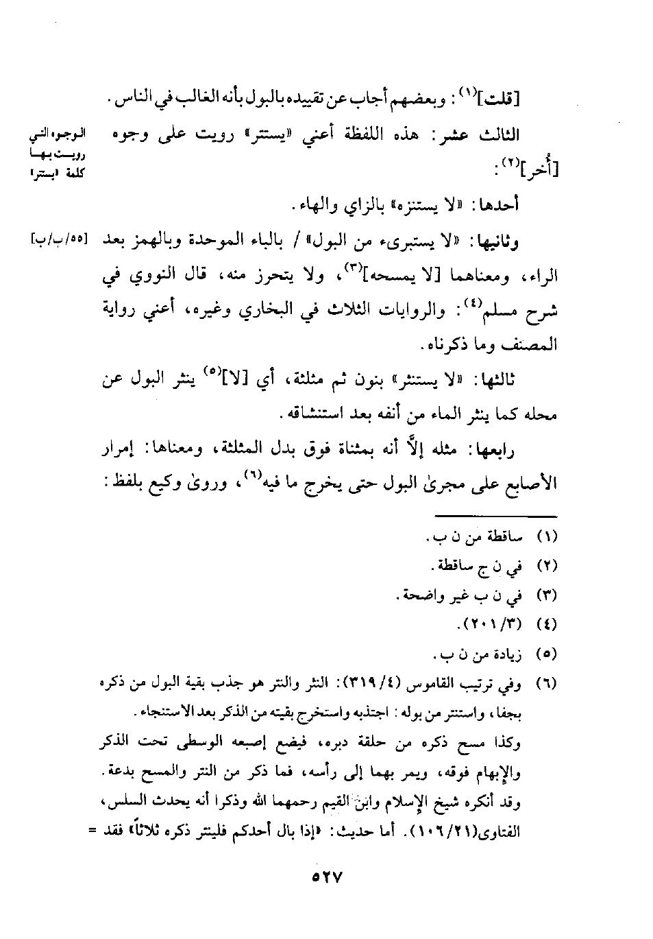 (¬6) وفي ترتيب القاموس (4/ 319): النثر والنتر هو جذب بقية البول من ذكره بجفا، واستنتر من بوله: اجتذبه واستخرج بقيته من الذكر بعد الاستنجاء.