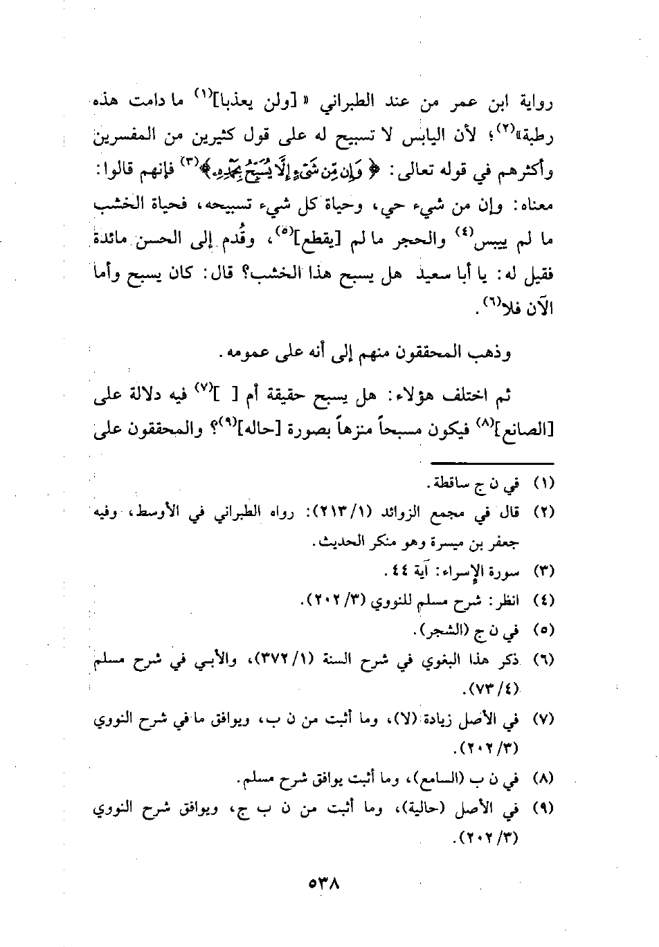 ثم اختلف هؤلاء: هل يسبح حقيقة أم [] (¬7) فيه دلالة على [الصانع] (¬8) فيكون مسبحًا منزهًا بصورة [حاله] (¬9)؟ والمحققون على