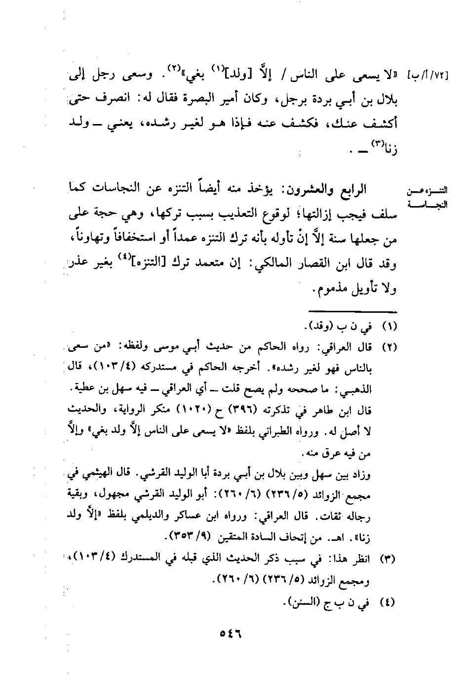 وزاد بين سهل وبين بلال بن أبي بردة أبا الوليد القرشي. قال الهيثمي في مجمع الزوائد (5/ 236) (6/ 260): أبو الوليد القرشي مجهول، وبقية رجاله ثقات. قال العراقي: ورواه ابن عساكر والديلمي بلفظ، "إلاَّ ولد زنا". اهـ. من إتحاف السادة المتقين (9/ 353).