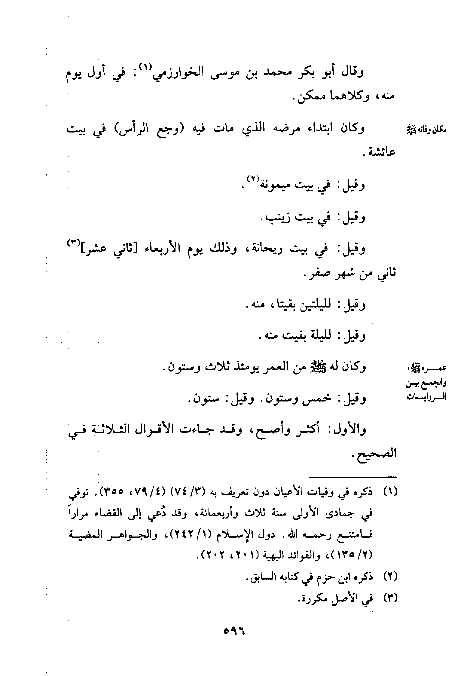 وقيل: في بيت ريحانة، وذلك يوم الأربعاء [ثاني عشر] (¬3) ثاني من شهر صفر.