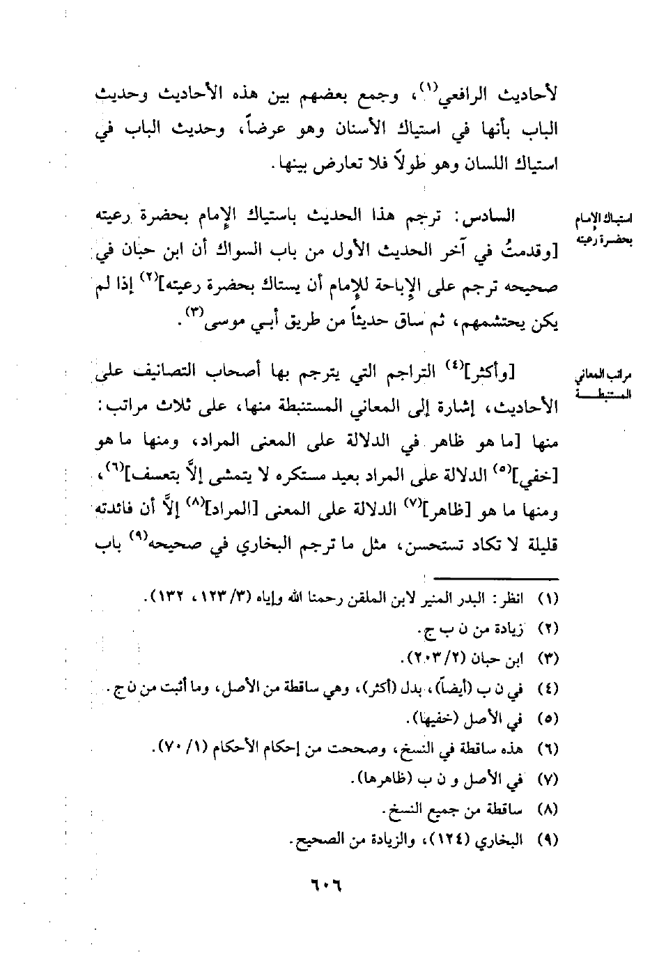 [وأكثر] (¬4) التراجم التي يترجم بها أصحاب التصانيف على الأحاديث، إشارة إلى المعاني المستنبطة منها، على ثلاث مراتب: منها [ما هو ظاهر في الدلالة على المعنى المراد، ومنها ما هو [خفي] (¬5) الدلالة على المراد بعيد مستكره لا يتمشى إلَّا بتعسف] (¬6)، ومنها ما هو [ظاهر] (¬7) الدلالة على المعنى [المراد] (¬8) إلَّا أن فائدته قليلة لا تكاد تستحسن، مثل ما ترجم البخاري في صحيحه (¬9) باب