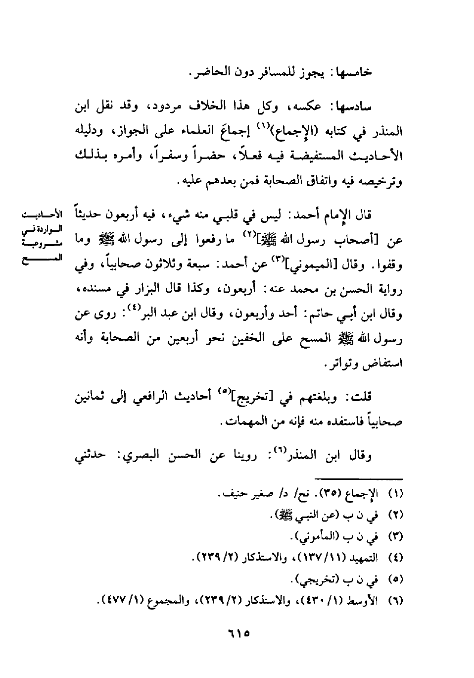 (¬6) الأوسط (1/ 430)، والاستذكار (2/ 239)، والمجموع (1/ 477).