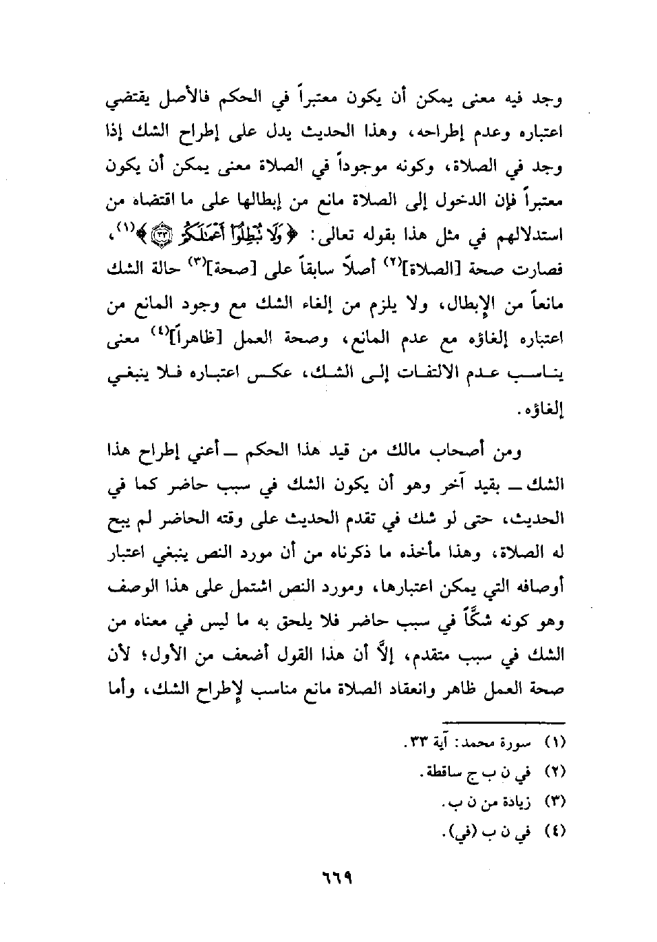 وجد في الصلاة، وكونه موجدًا في الصلاة معنى يمكن أن يكون معتبرًا فإن الدخول إلى الصلاة مانع من إبطالها على ما اقتضاه من استدلالهم في مثل هذا بقوله تعالى: {وَلَا تُبْطِلُوا أَعْمَالَكُمْ (33)} (¬1)، فصارت صحة [الصلاة] (¬2) أصلًا سابقًا على [صحة] (¬3) حالة الشك مانعًا من الإِبطال، ولا يلزم من إلغاء الشك مع وجود المانع من اعتباره إلغاؤه مع عدم المانع، وصحة العمل [ظاهرًا] (¬4) معنى يناسب عدم الالتفات إلى الشك، عكس اعتباره فلا ينبغي إلغاؤه.