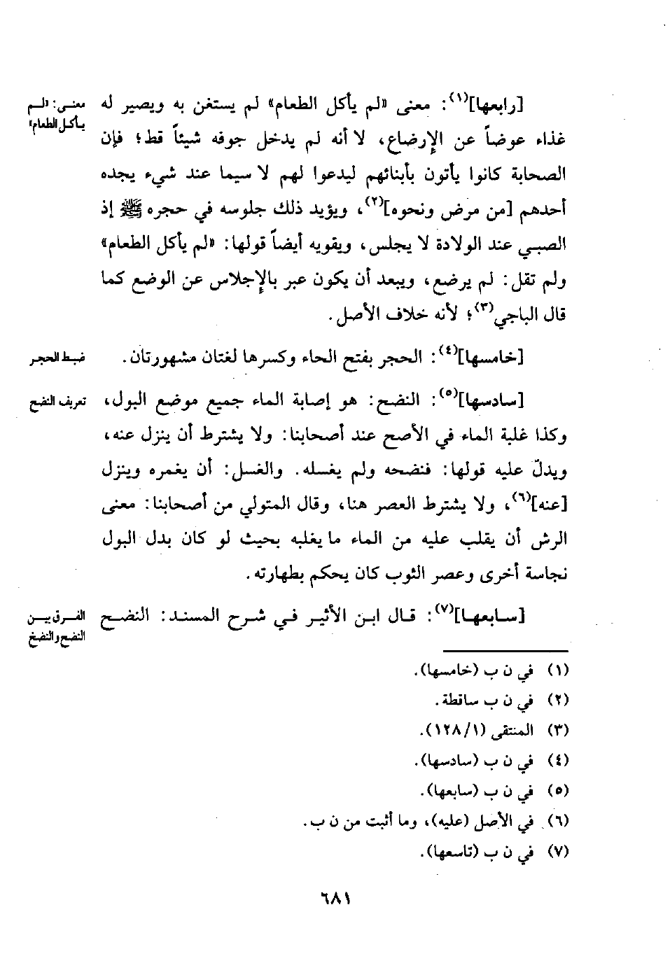 [سابعها] (¬7): قال ابن الأثير في شرح المسند: النضح