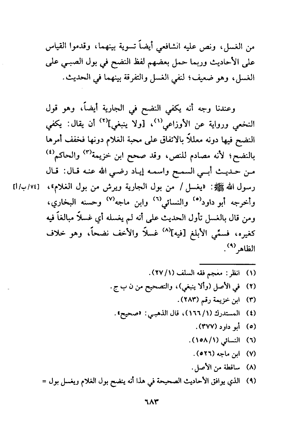 (¬9) الذي يوافق الأحاديث الصحيحة في هذا أنه ينضح بول الغلام ويغسل بول =