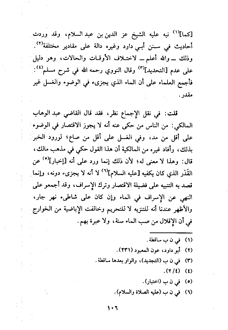 [كما] (¬1) نبه عليه الشيخ عز الدبن بن عبد السلام، وقد وردت أحاديث في سنن أبي داود وغيره دالة على مقادير مختلفة (¬2). وذلك -والله أعلم- لاختلاف الأوقات والحالات، وهو دليل على عدم [التحديد] (¬3) وقال النووي رحمه الله في شرح مسلم (¬4): فأجمع العلماء على أن الماء الذي يجزئ في الوضوء والغسل غير مقدر.