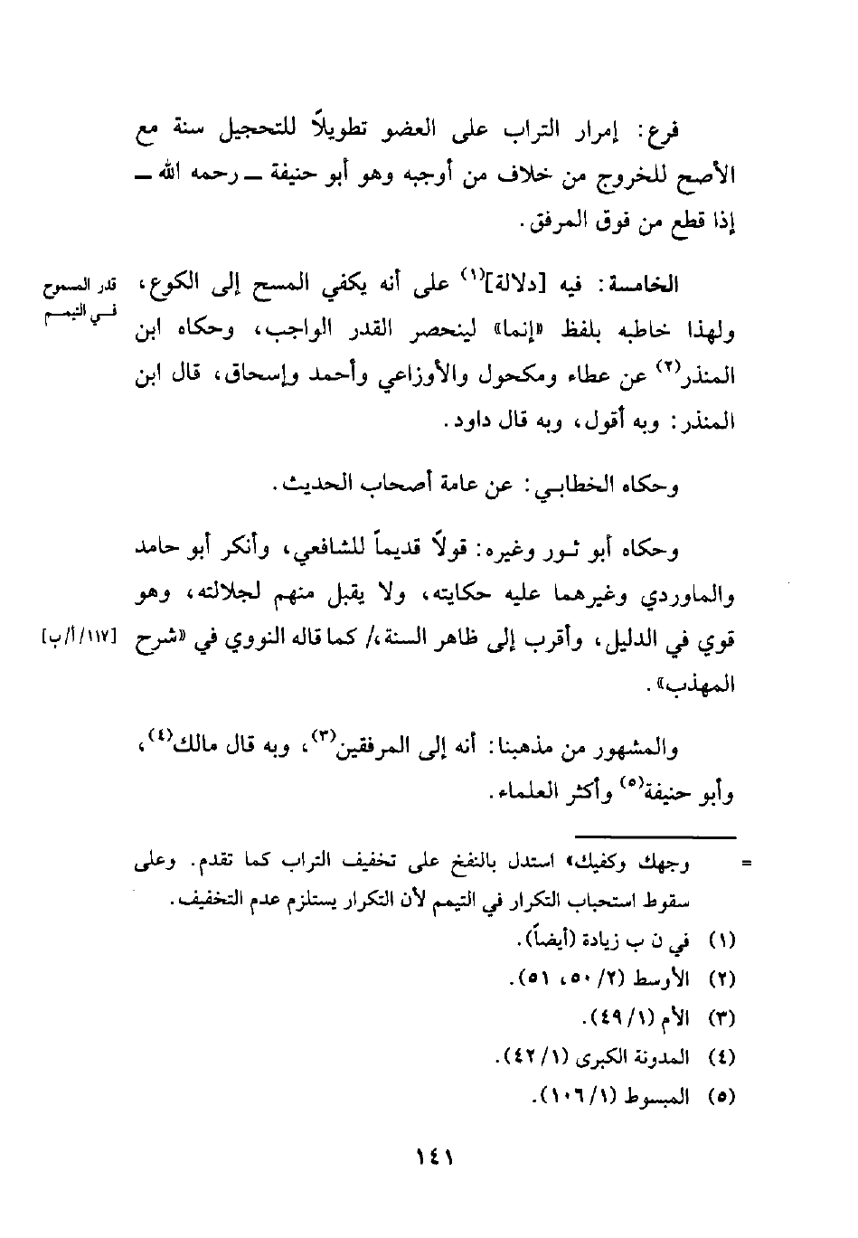 فرع: إمرار التراب على العضو تطويلًا للتحجيل سنة مع الأصح للخروج من خلاف من أوجبه وهو أبو حنيفة -رحمه الله-