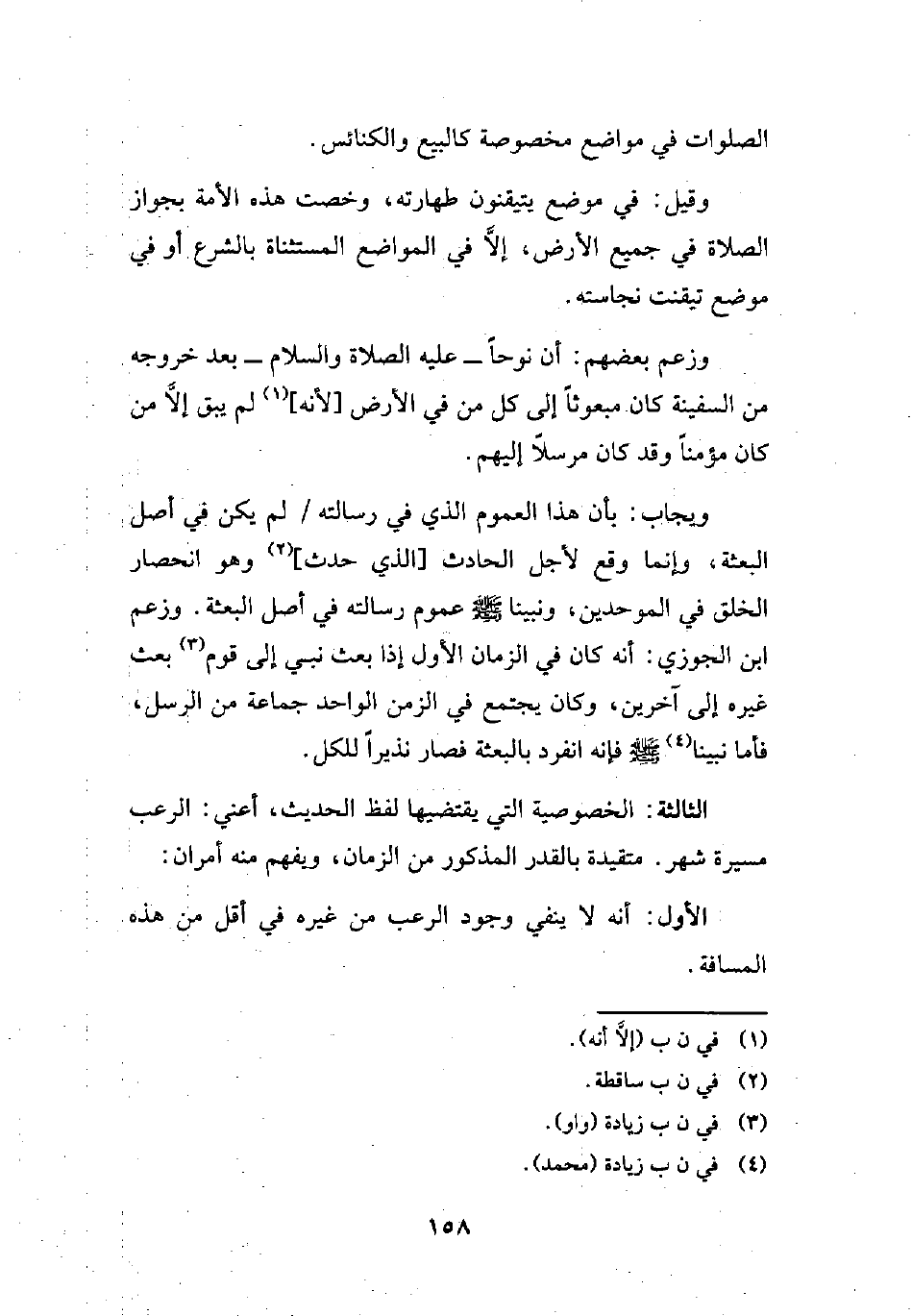 ويجاب: بأن هذا العموم الذي في رسالته لم يكن في أصل البعثة، وإنما وقع لأجل الحادث [الذي حدث] (¬2) وهو انحصار الخلق في الموحدين، ونبينا - صلى الله عليه وسلم - عموم رسالته في أصل البعثة. وزعم ابن الجوزي: أنه كان في الزمان الأول إذا بعث نبي إلى قوم (¬3) بعث غيره إلى آخرين، وكان يجتمع في الزمن الواحد جماعة من الرسل، فأما نبينا (¬4) - صلى الله عليه وسلم - فإنه انفرد بالبعثة فصار نذيرًا للكل.