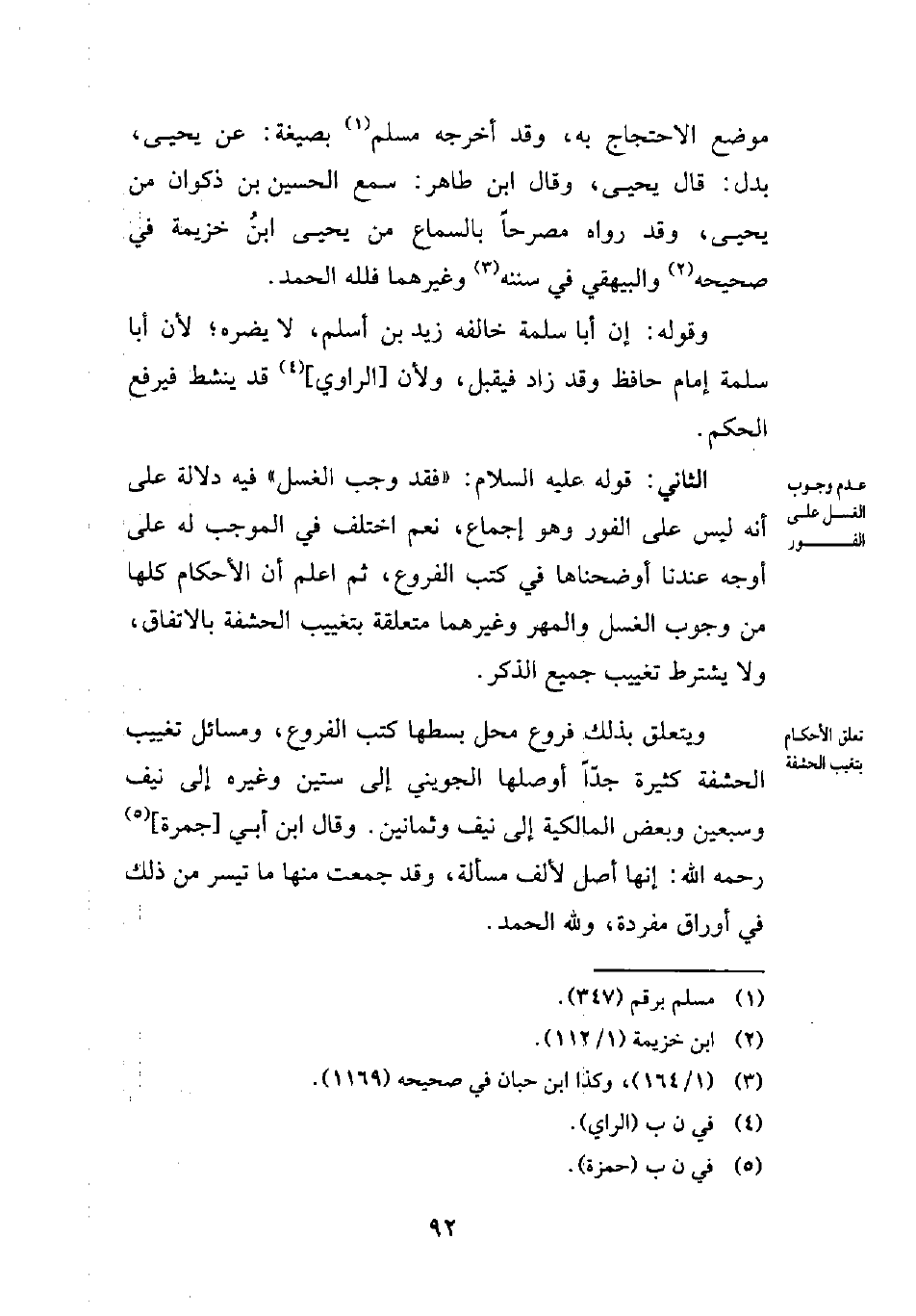 ويتعلق بذلك فروع محل بسطها كتب الفروع، ومسائل تغييب الحشفة كثيرة جدًّا أوصلها الجويني إلى ستين وغيره إلى نيف وسبعين وبعض المالكية إلى نيف وثمانين. وقال ابن أبي [جمرة] (¬5) رحمه الله: إنها أصل لألف مسألة، وقد جمعت منها ما تيسر من ذلك في أوراق مفردة، ولله الحمد.