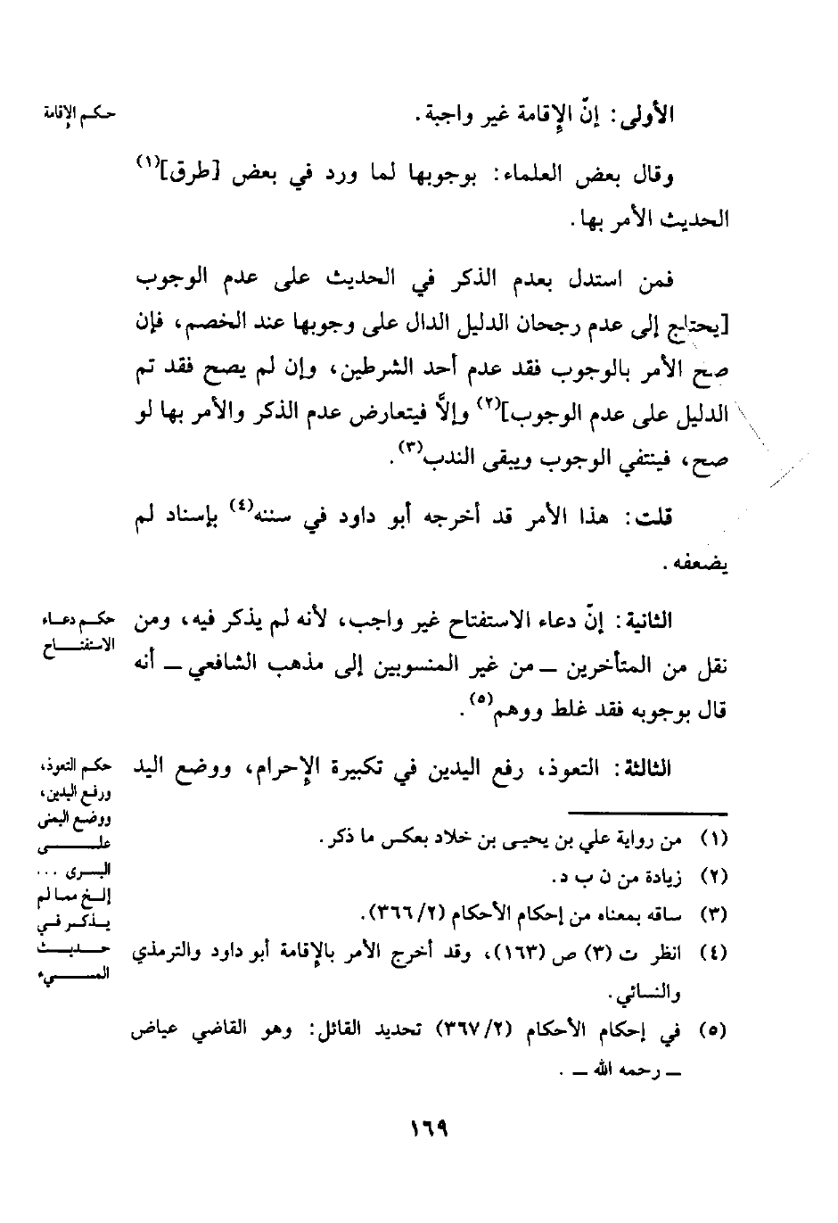 (¬4) انظر ت (3) ص (163)، وقد أخرج الأمر بالإِقامة أبو داود والترمذي والنسائي.