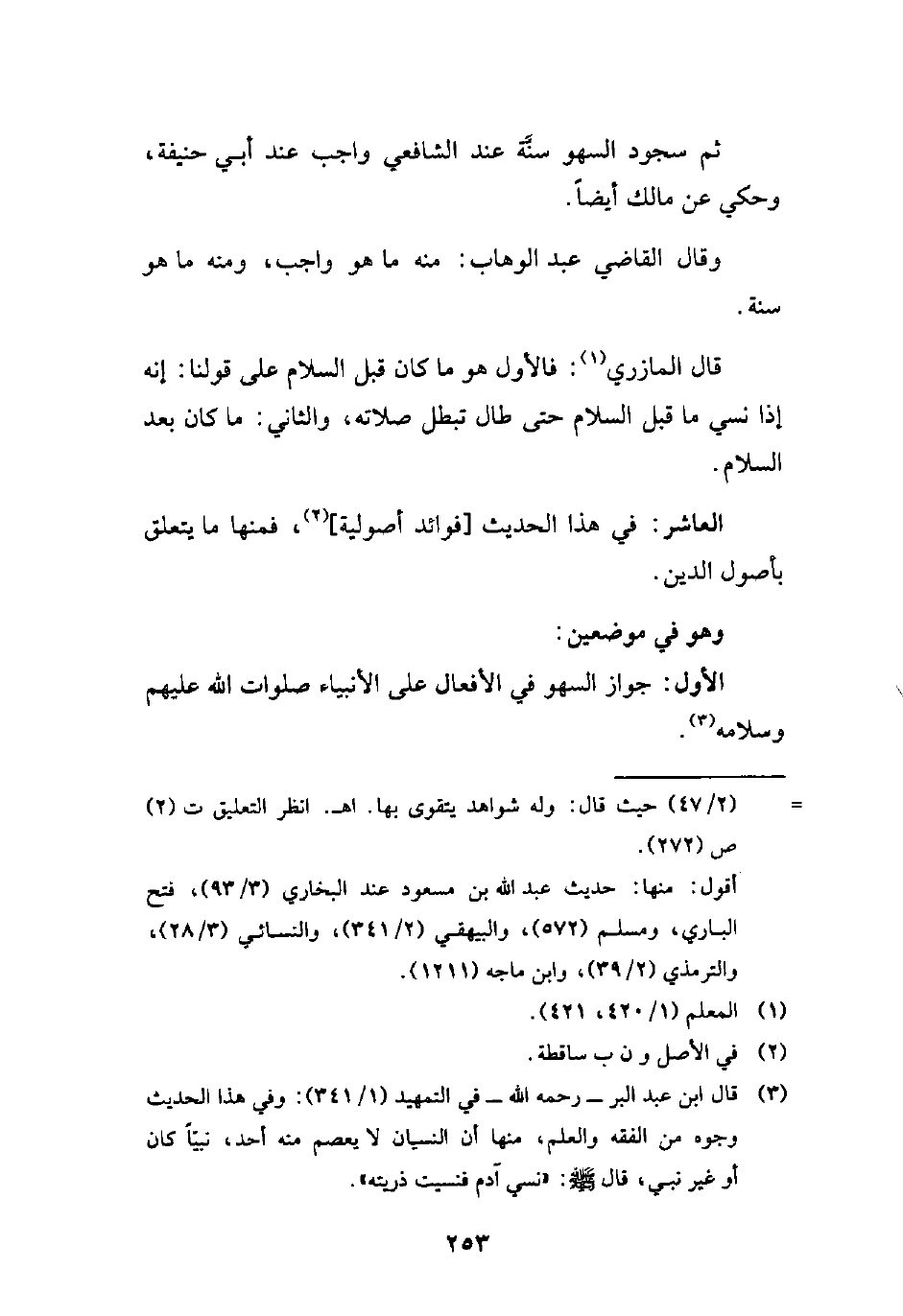 الأول: جواز السهو في الأفعال على الأنبياء صلوات الله عليهم وسلامه (¬3).