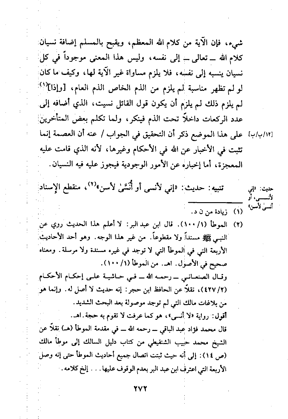 تنبيه: حديث: "إني لأنسى او أُنَسَّى لأسن" (¬2)، منقطع الإِسناد