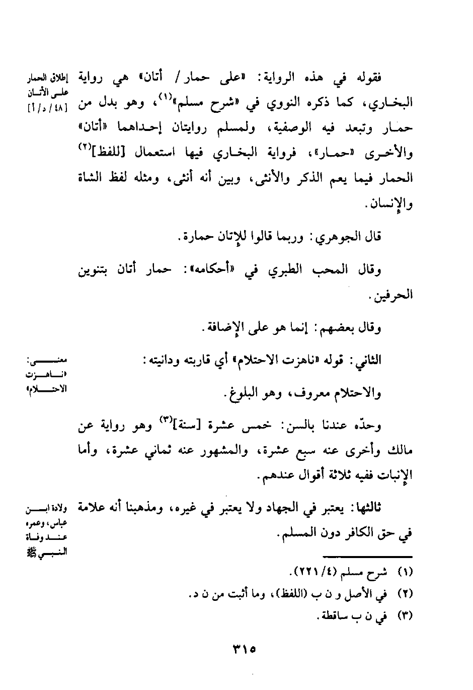الثاني: قوله "ناهزت الاحتلام" أي قاربته ودانيته: والاحتلام معروف، وهو البلوغ.