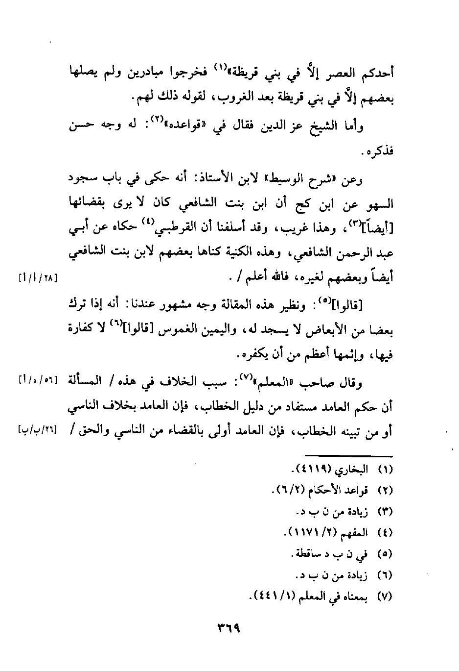 أحدكم العصر إلَّا في بني قريظة" (¬1) فخرجوا مبادرين ولم يصلها بعضهم إلَّا في بني قريظة بعد الغروب، لقوله ذلك لهم.